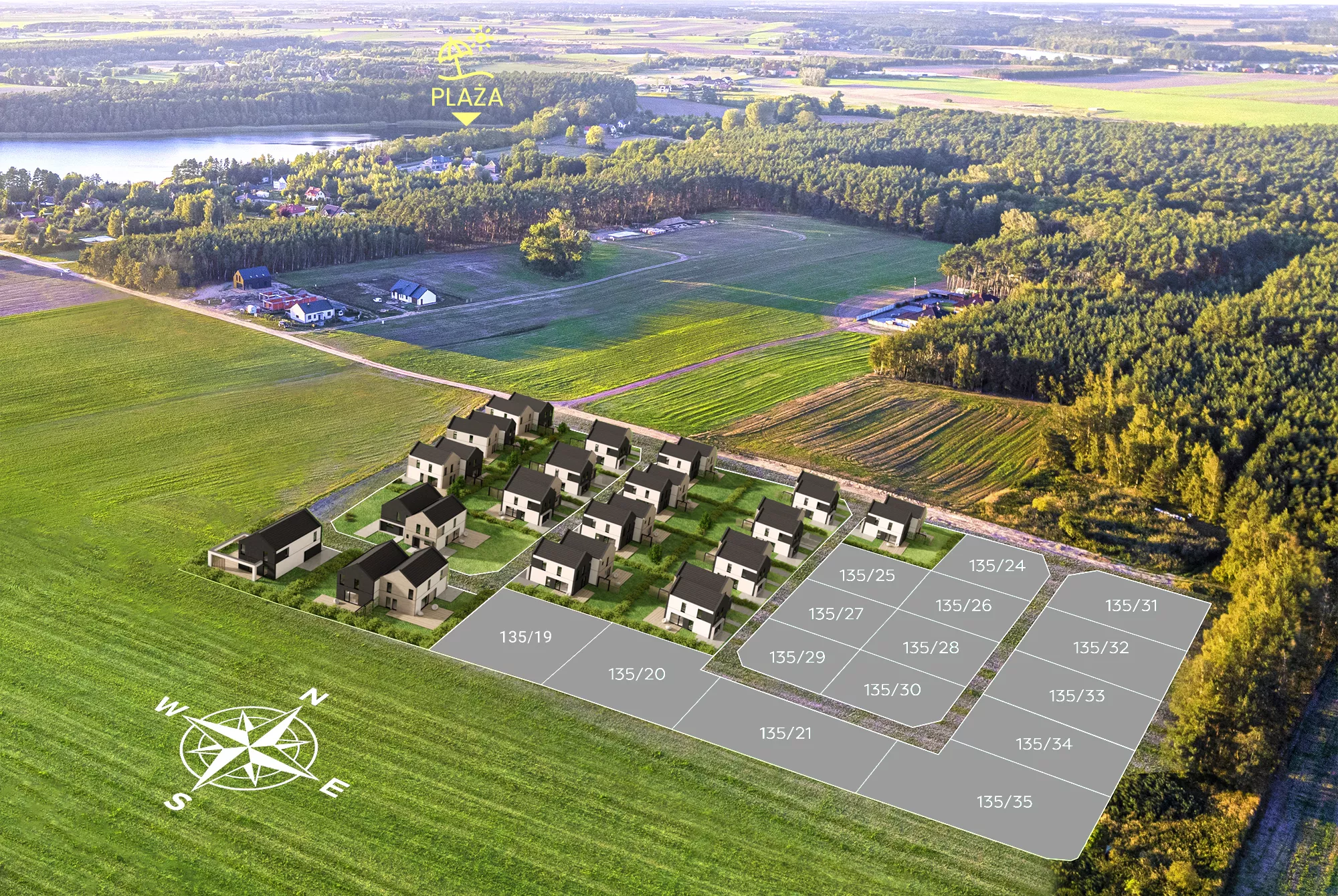 Wszystkie 33 działki budowlane objęte są miejscowym planem zagospodarowania przestrzennego o metrażu od 504 do 599 mkw. Do każdej doprowadzone zostaną media i utwardzona droga. Dodatkowo w cenie działki jest projekt domu. Na pozostałych działkach powstanie kameralna inwestycja deweloperska składająca się z domów w zabudowie jednorodzinnej w bardzo atrakcyjnych cenach.